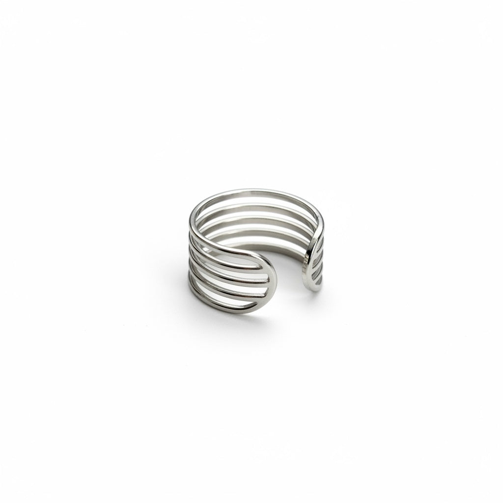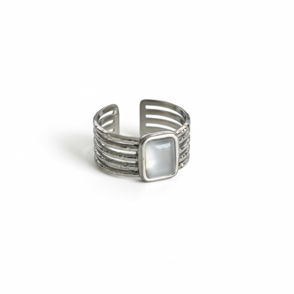 Os anéis em aço inoxidável GRINE são resistentes à água, não oxidam e são hipoalergénicos, ideais para uso diário sem preocupações. Combinam perfeitamente com colares e pulseiras da mesma coleção. Perfeitos para mulheres urbanas que procuram bijuteria versátil, atemporal e de baixa manutenção.
