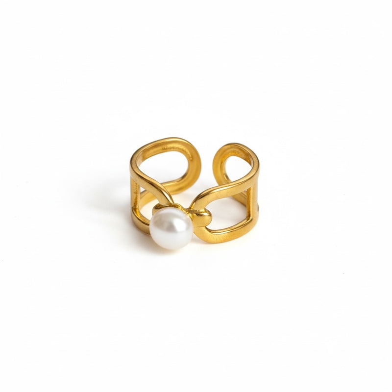 Anel Dourado Laço de Pérola