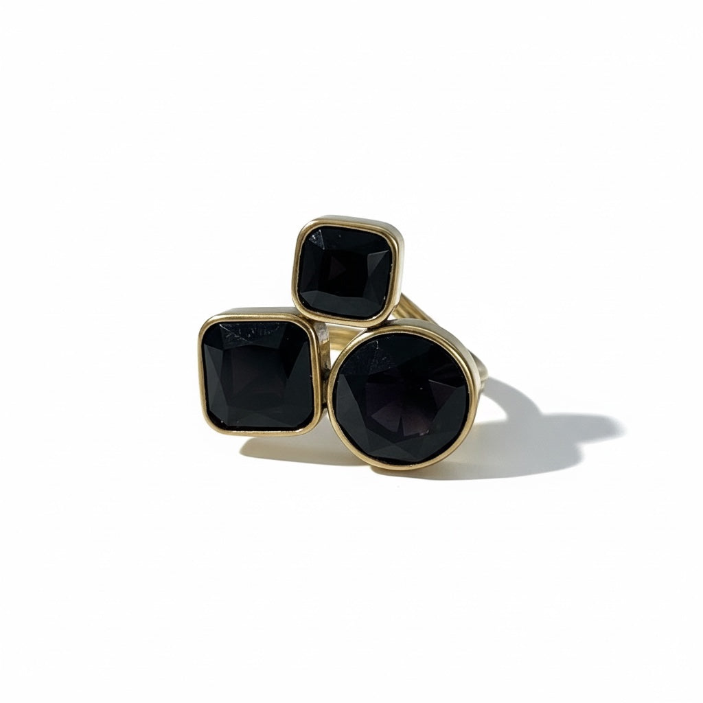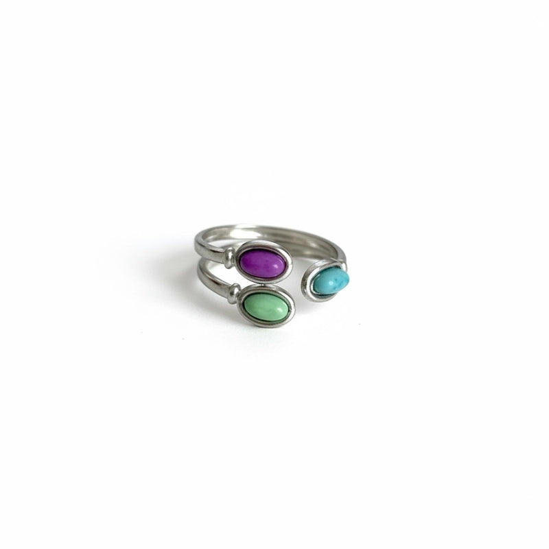 Anel 3 Pedras Coloridas Aço Inoxidável