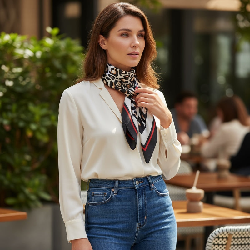 Versáteis e elegantes, os lenços podem ser usados de múltiplas formas — ao pescoço, no cabelo ou como acessório de mala. Um clássico reinventado que confere estilo instantâneo.